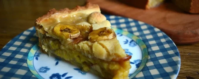 - Untar un molde con mantequilla y forrar el fondo con papel de horno. Coloque la mitad de la masa en el molde y aplánela, después disponga los plátanos y cubra con la masa restante.
