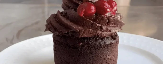Imagínese un delicado cupcake de chocolate con jugosas cerezas en su interior, cubierto con una ligera ganache de chocolate, y cuando se le añade un toque de café, el sabor es inolvidable.